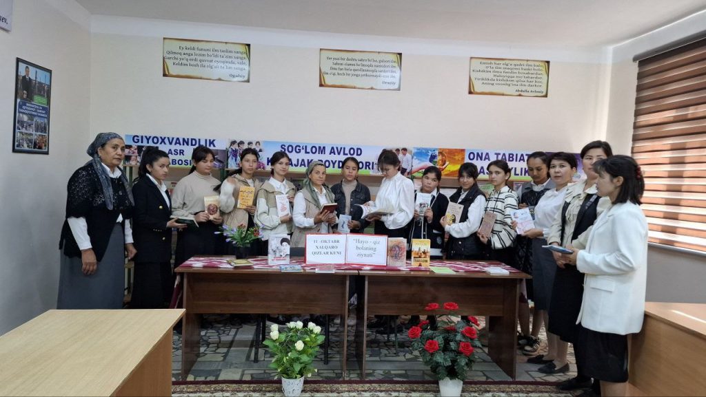 Xiva tuman axborot kutubxona markazi xodimlari tomonidan Xalqaro «Qizlar kuni» munosabati bilan 6 — 11 oktyabr kunlari «Qizlar o’zgarishlar etakchisi sifatida»shiori ostida «Hayo — qiz bolaning ziynati » mavzusida o’smirl qizlar bilan davra suhbati bo’lib o‘tdi. Suhbat jarayonida Bibliografiya bo‘limi xizmati rahbari ustoz Z Panayeva qizlarni Xalqaro «Qizlar kuni»bilan tabriklab ,orzulari dunyolarcha beg’ubor,qalbi qaynoq ,go‘zallikda tengsiz bo‘lgan dillarida kalomi bo‘lgan iboli hayoli iffatli qizlar bo’lajak ona ,sarishta uy bekasi shuningdek muayyan bir sohaning etuk mutaxassisi sizlar hech bir yigitlardan qolishmaydigan To’maris avlodidansiz,.Kelgusida kitob bilan do‘st bo‘lib Zebunniso,Uvaysiy,Nodirabegimlar,Zulfiya xonim izdoshlari bo‘lishlarida ishonch bildirib o‘tdi. Tadbir mavzusi bo‘yicha qizlar bilan fikrlar almashildi qiziqarli tarzda bo‘lib o‘tdi